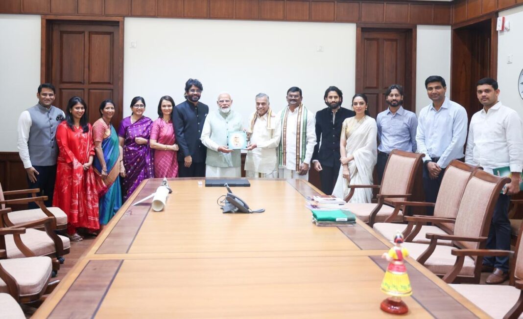 అక్కినేని కుటుంబ సభ్యులు ప్రధాని నరేంద్ర మోదీని కలిశారు. ఈ సందర్భంగా వారు పలు అంశాలపై ప్రధానితో చర్చించినట్లు సమాచారం. కుటుంబ సభ్యులు ప్రధానికి ప్రత్యేకంగా అక్కినేని నాగేశ్వర్ రావు జీవితంపై రూపొందించిన పుస్తకాన్ని బహూకరించినట్లు తెలుస్తోంది. ఈ భేటీ రాజకీయంగా, సినీ రంగంలో చర్చనీయాంశంగా మారింది. అక్కినేని నాగార్జున, అక్కినేని అమల, ఇతర కుటుంబ సభ్యులు, టీడీఎల్పీ పార్లమెంటరీ నేత లావు కృష్ణ దేవరాయలు, మాజీ ఎంపీ యార్లగడ్డ లక్ష్మీప్రసాద్ తదితరులు ఈ సమావేశంలో పాల్గొన్నారు. ప్రధాని మోదీ కూడా వారితో స్నేహపూర్వకంగా మాట్లాడినట్లు సమాచారం. ఈ సమావేశానికి సంబంధించిన ఫోటోలు ప్రస్తుతం సోషల్ మీడియాలో వైరల్ అవుతున్నాయి. అక్కినేని కుటుంబం మోదీని ఎందుకు కలిశారు అనే దానిపై ఇంకా స్పష్టత రాలేదు.