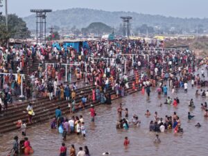ఆసియా ఖండంలోనే అతిపెద్ద గిరిజన జాతరగా, తెలంగాణ కుంభమేళాగా పేరుగాంచిన మేడారం సమ్మక్క సారలమ్మ మహా జాతర మొదలయ్యింది. లక్షలాది మంది భక్తులు తరలివస్తున్నారు. జాతరలో కీలక ఘట్టం ఆవిష్కృతం కానుంది. సాయంత్రం కన్నెపల్లి నుంచి సారలమ్మ అమ్మవారు మేడారం గద్దెపైకి రానున్నారు. కన్నెపల్లిలోని సారలమ్మ మందిరంలో కోయ పూజారులు ప్రత్యేక పూజలు నిర్వహిస్తారు. అనంతరం భారీ భద్రత మధ్య సారలమ్మ గద్దెకు చేరుకుంటారు. గోవింద రాజు, పగిడిద్ద రాజులు కూడా గద్దెలకు చేరుకుంటారు. అలాగే గురువారం సాయంత్రం చిలకలగుట్ట నుంచి సమ్మక్క అమ్మవారు గద్దెపైకి వస్తారు. సమ్మక్క రాకతో జాతర పరిపూర్ణం కానుంది. మరుసటి రోజు అనగా శుక్రవారం(జనవరి 30) భక్తులు సమ్మక్క ` సారలమ్మలను దర్శించుకుని మొక్కులు చెల్లించుకుంటారు. చివరి రోజైన శనివారంసాయంత్రం సమ్మక్క, సారలమ్మ, గోవింద రాజు, పగిడిద్ద రాజులు వన ప్రవేశం చేస్తారు. దీంతో జాతర పరిపూర్ణంగా ముగుస్తుంది. మేడారం మహా జాతర తెలంగాణ సంస్కతి, గిరిజన సంప్రదాయాలకు ప్రతీకగా నిలుస్తుంది. మేడారంలో భక్తుల రద్దీ కొనసాగుతోంది. జంపన్నవాగులో పుణ్యస్నానాలు చేసి, వనదేవతలకు మొక్కులు చెల్లించుకుంటున్నారు భక్తులు. జనాల గుడారాలతో మేడారం కిటకిటలాడుతోంది. భక్తులు బెల్లం(బంగారం) సమర్పిస్తూ ఆచారాలు పాటిస్తున్నారు. మహాజాతరకు ప్రభుత్వం కట్టుదిట్టమైన భద్రతా ఏర్పాట్లు చేపట్టింది. దాదాపు మూడు కోట్ల మంది భక్తులు హాజరవుతారని అంచనా. ప్రభుత్వం తాజాగా గ్దదెలను పునర్నిర్మాణం చేసింది. అలాగే భక్తులకు ఎలాంటి ఇబ్బందులు కలుగకుండా రవాణా, నీరు, వైద్యం, భద్రతా ఏర్పాట్లు చేశారు.మేడారం సమ్మక్క`సారలమ్మ మహాజాతర ప్రారంభం కావడంతో ములుగు జిల్లాలోని అడవులన్నీ భక్తజనసంద్రంగా మారాయి. ఆసియాలోనే అతిపెద్ద గిరిజన పండగగా పేరొందిన ఈ జాతరలో అత్యంత కీలకమైన ఘట్టం జంపన్న వాగులో పుణ్యస్నానాలు ఆచరించడం. సారలమ్మ గద్దెపైకి వస్తున్న తరుణంలో వేలాది మంది భక్తులు జంపన్న వాగు వద్దకు పోటెత్తడంతో ఆ ప్రాంతమంతా కిటకిటలాడుతోంది. చిన్నా పెద్దా అనే తేడా లేకుండా భక్తులందరూ బస్సుల ద్వారా, సొంత వాహనాల ద్వారా నేరుగా వాగు వద్దకు చేరుకుని తమ మొక్కులు చెల్లించుకుంటున్నారు. మేడారం వచ్చే ప్రతి భక్తుడు ముందుగా జంపన్న వాగును సందర్శించడం ఒక ఆచారంగా వస్తోంది. ఇక్కడ పుణ్యస్నానం ఆచరించిన తర్వాతే అమ్మవార్ల గద్దెల దర్శనానికి వెళ్లడం సంప్రదాయం. భక్తులు తమ వెంట తెచ్చుకున్న అమ్మవారి ప్రతిమలను వాగులో పవిత్రంగా కడిగి, పూజలు నిర్వహిస్తారు. ఈ సందర్భంగా భక్తులు తమ ఇళ్ల వద్ద ప్రతిష్టించుకున్న గద్దెలను మేడారం తీసుకువచ్చి, ఇక్కడ జంపన్నకు మొక్కులు అప్పగిస్తారు. తాము కోరుకున్న కోరికలు నెరవేరి